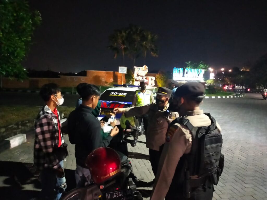 Gresik – Polres Gresik terus menegakan protokol kesehatan di tengah Pandemi Covid-19. Warga yang tidak menggunakan masker lamgsung ditegur.