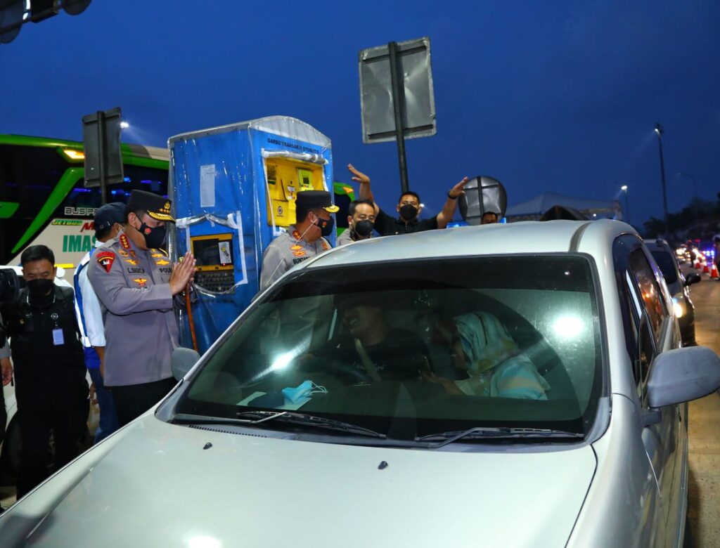 Cikampek – Kapolri Jenderal Listyo Sigit Prabowo kembali melakukan pengecekan langsung terkait dengan situasi arus balik Lebaran 2022 serta penerapan rekayasa lalu lintas skema one way, di Tol Cikampek Utama (Cikatama) KM 70, Sabtu (7/5/2022) malam.