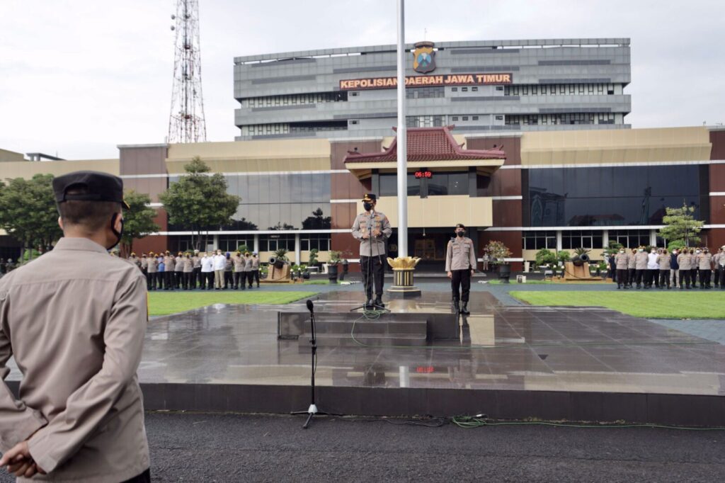 SURABAYA,- Kapolda Jawa Timur Irjen Pol Nico Afinta dan Waka Polda Jawa Timur Brigjen Pol Slamet Hadi Supraptoyo didampingi Pejabat Utama (PJU) Polda Jatim, Rabu (11/5/2022) pagi, melaksanakan apel konsolidasi Kamtibmas pasca Operasi Ketupat Semeru 2022 dan halal bihalal dengan seluruh personel Polda Jatim.