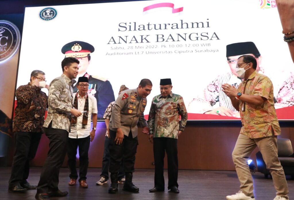 Wakapolda Jawa Timur Brigjen Pol Slamet Hadi Supraptoyo menjadi narasumber bersama Dewan Pembina Rumah Bhinneka KH. Said Aqil Siraj dan Wakil Gubernur Jatim Emil Elistianto Dardak dalam silaturahmi anak bangsa yang diselenggarakan oleh Roemah Bhinneka, di Universitas Ciputra Surabaya, pada Sabtu (28/5/2022).
