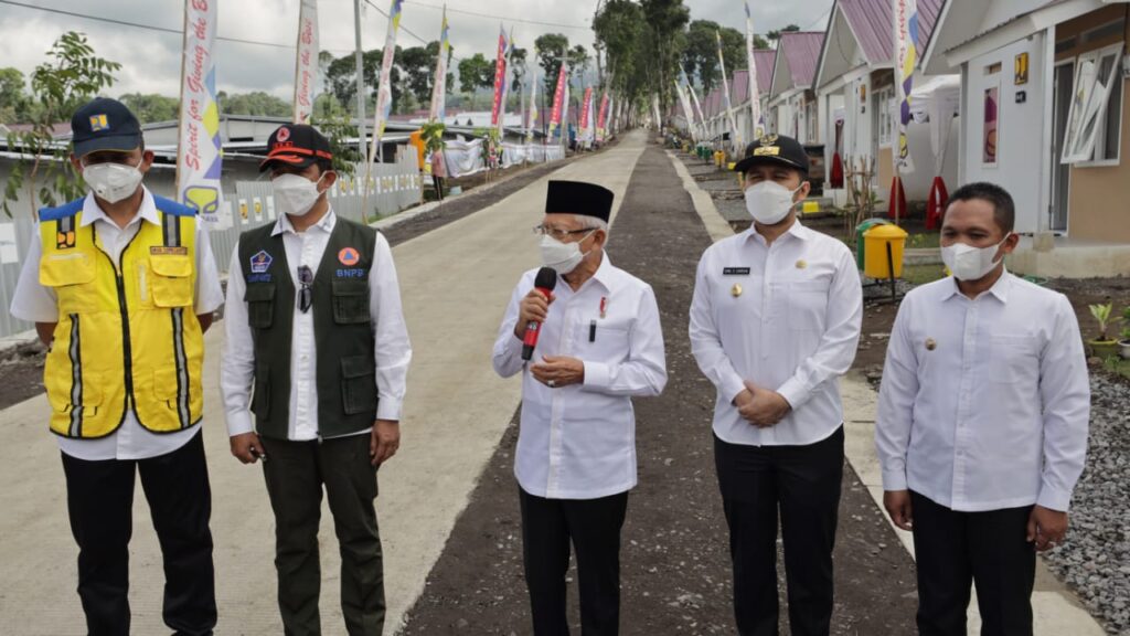 Ka BNPB, Bupati Lumajang dan Dirjen Perumahan Kementerian PUPR melaporkan kepada Wakil Presiden RI K.H Ma’ruf Amin. Target pembangunan rumah Hunian Sementara (Huntara) di Desa Sumber Mujur, Kecamatan Candipuro Kabupaten Lumajang, ada sebanyak 1.951 unit.