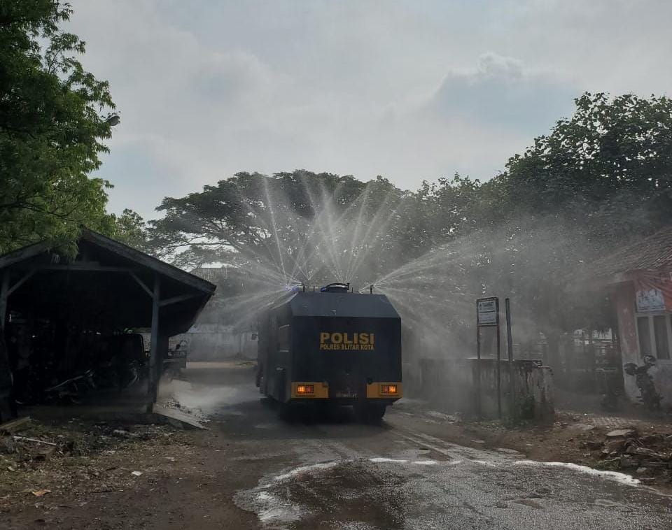 Selain itu, water cannon milik Polres Blitar Kota juga diturunkan untuk memaksimalkan penyemprotan disinfektan.