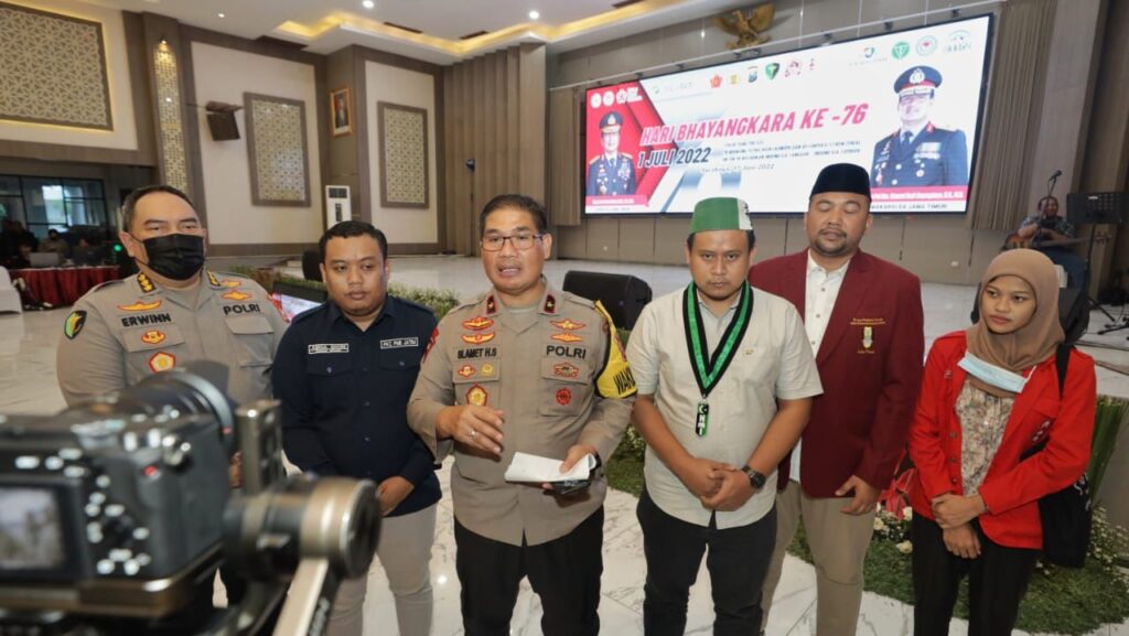 “Hari ini biddokkes polda jatim melaksanakan bakti kesehatan dalam rangka rangkaian acara ultah bhayangkara ke 76. Dan hari ini saya bersama rekan rekan elemen organisasi yang ada di jatim diantaranya PKC PMII, Batko HMI dan DPD GMNI,” kata Wakapolda Jatim, Brigjen Pol Slamet Hadi Supraptoyo, Jumat (17/6/2022) siang.