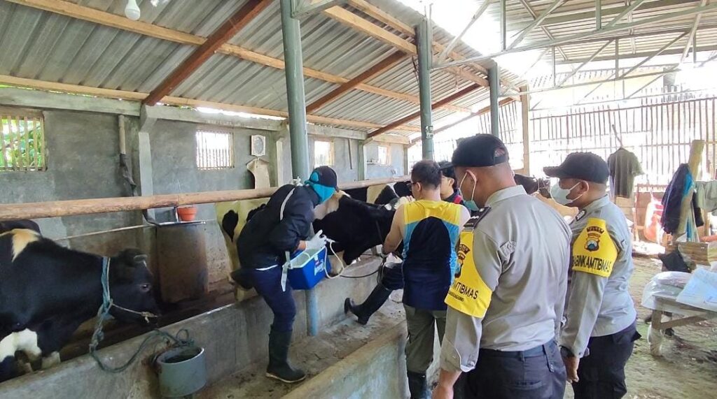 Hal ini sebagai upaya Polres Batu dalam membantu pemerintah untuk menanggulangi Penyakit Mulut dan Kuku (PMK) pada hewan ternak.