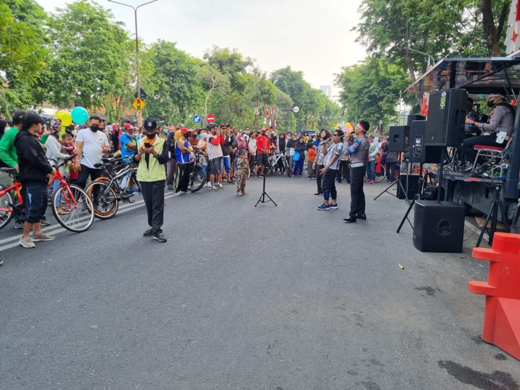 Tak sedikit para pengunjung CFD Taman Bungkul Surabaya yang terhibur dengan adanya penampilan grup band dari anggota kepolisian yang bermain musik, bahkan masyarakat juga ikut bernyanyi dan berjoget bersama sambil berkomunikasi atau interaksi berbasis pesan kamtibmas. Selain itu, dua unit Mobil Videotron juga secara live menyiarkan kegiatan Kirab Merah Putih yang sedang berlangsung di Jakarta.