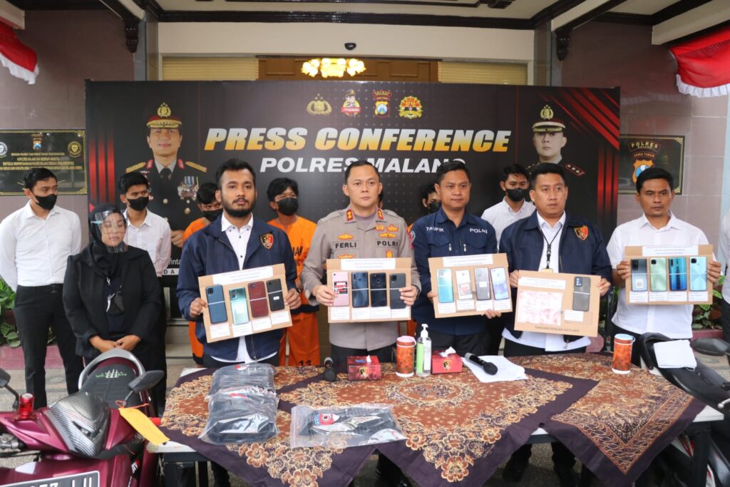 “Kelima orang ini memiliki peran masing-masing, mulai dari yang beraksi di lapangan sampai yang menadah hasil curian itu. Dari hasil penyelidikan awal petugas berhasil mengamankan sedikitnya 16 unit HP hasil curian, serta uang tunai Rp. 3.750.000 hasil penjualan HP curian,” beber Kapolres Malang ini.