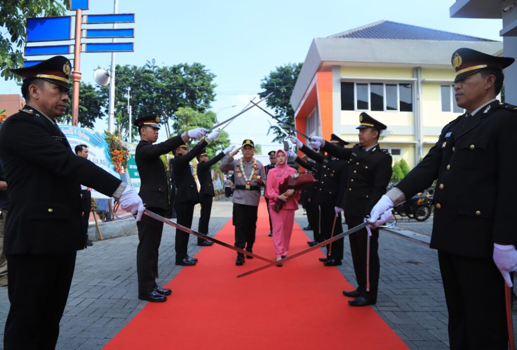 GRESIK – Disambut AKBP Mochamad Nur Azis beserta ibu dan didampingi PJU juga anggota Polres Gresik, Kapolres Gresik AKBP Adhitya Panji Anom bersama dengan ibu datang di Mapolres Gresik.