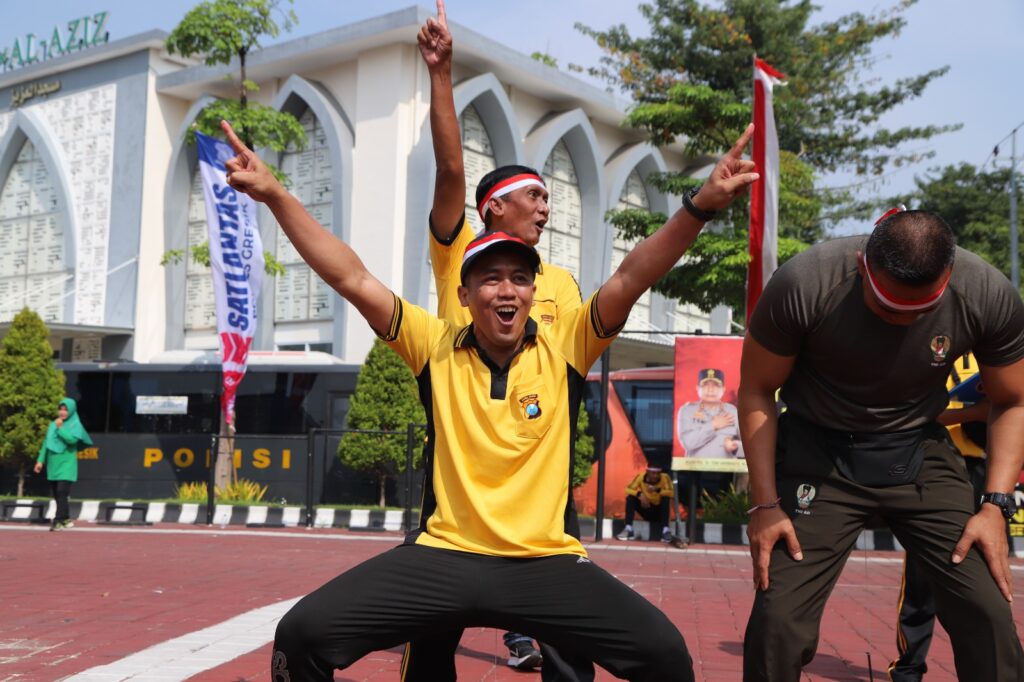 Kapolres Gresik AKBP Adhitya Panji Anom menyampaikan kegiatan olahraga bersama dalam rangka Hut Bhayangkara ke 77 tahun 2023 dengan tema melalui olahraga bersama TNI Polri yang bertujuan untuk memupuk sinergitas antara kedua intitusi dalam mendukung tugas pokok masing