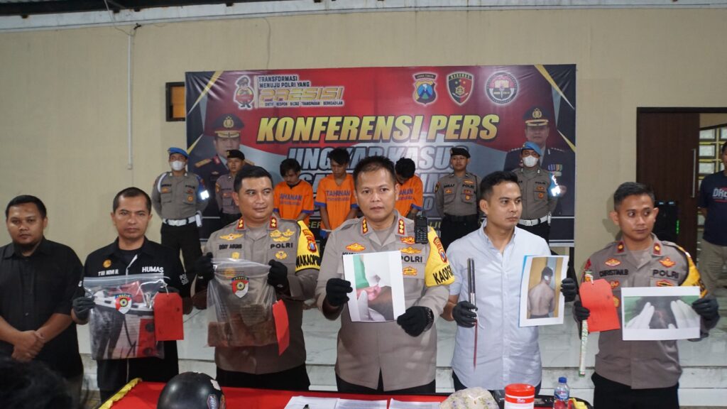 Polisi Amankan Empat Pelaku Penyerangan Perguruan Silat di Sidoarjo*SIDOARJO* – Sebuah perguruan silat yang sedang berlatih di Balai Desa Wonokupang, Balongbendo, Sidoarjo, diserang kelompok perguruan silat lainnya yang sedang melintas menuju Mojokerto Kota, Rabu (24/5/2023) malam.Beberapa dari mereka turun dari sepeda motor melempari batu ke arah balai desa tempat latihan silat. Kemudian MKB, 21 tahun, sebagai korban penyerangan yang sedang melatih silat mendatangi kelompok silat yang melempari batu tersebut.Di saat MKB mengamankan satu orang dari kelompok silat yang menyerang, datanglah lainnya untuk mengeroyok MKB.”Ada yang memukuli dengan tangan kosong, tongkat bambu serta ada yang melempari kembang api ke arah korban hingga mengakibatkan luka pada mata bagian kiri, telinga bagian kanan, lecet di lengan kanan kiri dan punggung,” jelas Kapolresta Sidoarjo Kombes Pol. Kusumo Wahyu Bintoro, pada wartawan, Kamis (25/5/2023).Dalam peristiwa ini, Polisi berhasil mengamankan empat orang pelaku. Mereka adalah AM, tertangkap di lokasi kejadian berperan memukuli korban MKP sebanyak lima kali ke arah dada, perut dan lengan. Pelaku kedua yakni AMA, tertangkap di Kabupaten Mojokerto berperan memukul punggung korban menggunakan bambu dan melempari tempat latihan silat dengan batu.Kemudian penggerak penyerangan, ialah R, 21 tahun, asal Geluran, Taman berhasil ditangkap Polisi di Kabupaten Jombang. Sebelumnya R, pernah mendekam di penjara karena kasus serupa di Kabupaten Gresik. Dari pengakuannya, aksi penyerangan ini dilakukannya spontanitas bersama rombongannya saat perjalanan menuju Jetis, Mojokerto Kota.“R inilah yang memprovokasi teman-teman dalam rombongannya untuk menyerang sebuah perguruan silat yang sedang berlatih di Balai Desa Wonokupang dengan melemparkan kembang api ke arah korban,” tambah Kombes Pol. Kusumo Wahyu Bintoro.Polisi menyampaikan ada satu lagi pelaku bawah umur yang ditangkap di Kabupaten Jombang. Penyidik Satreskrim Polresta Sidoarjo juga terus melakukan pendalaman terkait dengan dugaan adanya pelaku lain yang terlibat dalam kasus ini. Terhadap ke empat pelaku, dikenakan ancaman hukuman penjara tujuh tahun sesuai Pasal 170 ayat (2) ke-1 KUHP. (*)