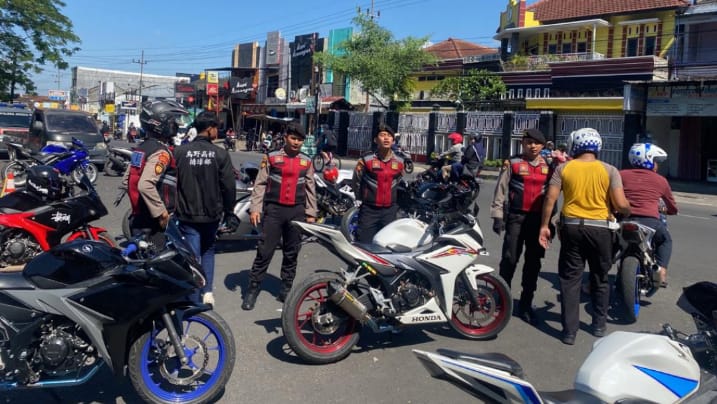 Polres Jember Amankan 53 Motor Spot Tak Sesuai Standart Saat Akan Gelar SunmoriJember, – Sebanyak 53 unit motor spot tidak sesuai standart pabrikan digiring Satlantas Polres Jember untuk diamankan.Kendaraan tersebut akan digunakan oleh pemiliknya dalam acara Sunmori, pada Minggu (28/5/2023) bersama 100 kendaraan lainya.Kapolres Jember AKBP. Moh. Nur Hidayat SIK.SH.MM., melalui Kasatlantas Polres Jember AKP. Arum Inambala SIK. SH mengatakan penindakan Satlantas Polres Jember ini setelah adanya laporan masyarakat yang resah dengan adanya ratusan kendaraan yang menggunakan knalpot brong.“Kami ada laporan dari warga yang resah karena ada ratusan sepeda motor dengan knalpot bising di kawasan kampus Unej pada minggu pagi untuk menggelar Sunmori,”ujar AKP Arum, Minggu (28/5).Kasatlantas Polres Jember menambahkan, dari ratusan kendaraan yang ditindak, pihaknya menemukan adanya 53 kendaraan yang tidak sesuai spesifikasi pabrikan dan tidak standar.“Sudah kami amankan ada 53 unit motor dengan menggunakan knalpot brong, dan juga roda yang tidak sesuai standart,”jelas AKP Arum.Dari pendataan yang dilakukan, diketahui jika peserta Sunmori tidak hanya berasal dari Kabupaten Jember saja, akan tetapi juga berasal dari luar Jember.“Ada yang dari Situbondo,Bondowoso dan bahkan Surabaya,”kata AKP Arum.Ke 53 kendaraan yang tidak sesuai standar tersebut pun dibawa ke Satlantas Polres Jember di Jalan Panjaitan untuk diamankan terlebih dahulu sambil dilakukan penilangan. “Untuk kendaraan yang tidak standar, kita amankan dulu di Satlantas, dan pemiliknya kita tilang, sedangkan yang lengkap dan standar, kita berikan kesempatan untuk melanjutkan perjalanannya,” pungkas Kasatlantas. (*)