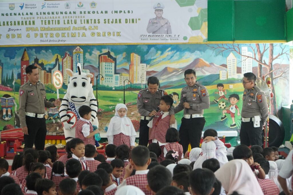 GRESIK – Satlantas Polres Gresik melaksanakan kegiatan Dikmas Lantas kepada siswa di SDN 4 Petrokimia Gresik, Senin (24-07-2023). Tujuannya mengenalkan rambu lalu lintas kepada para pelajar sejak dini.