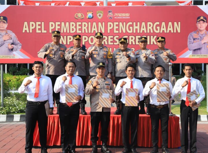 GRESIK – Kepala Kepolisian Resor Gresik AKBP Adhitya Panji Anom pimpin apel pemberian penghargaan kepada personel Polres...