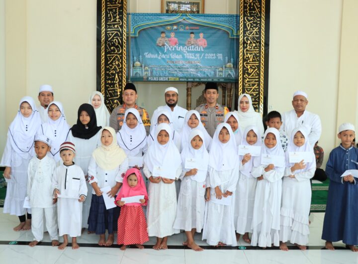 GRESIK – Polres Gresik peringati Tahun Baru Islam 1445 H bertempat di masjid Al Aziz, Kapolres Gresik,...