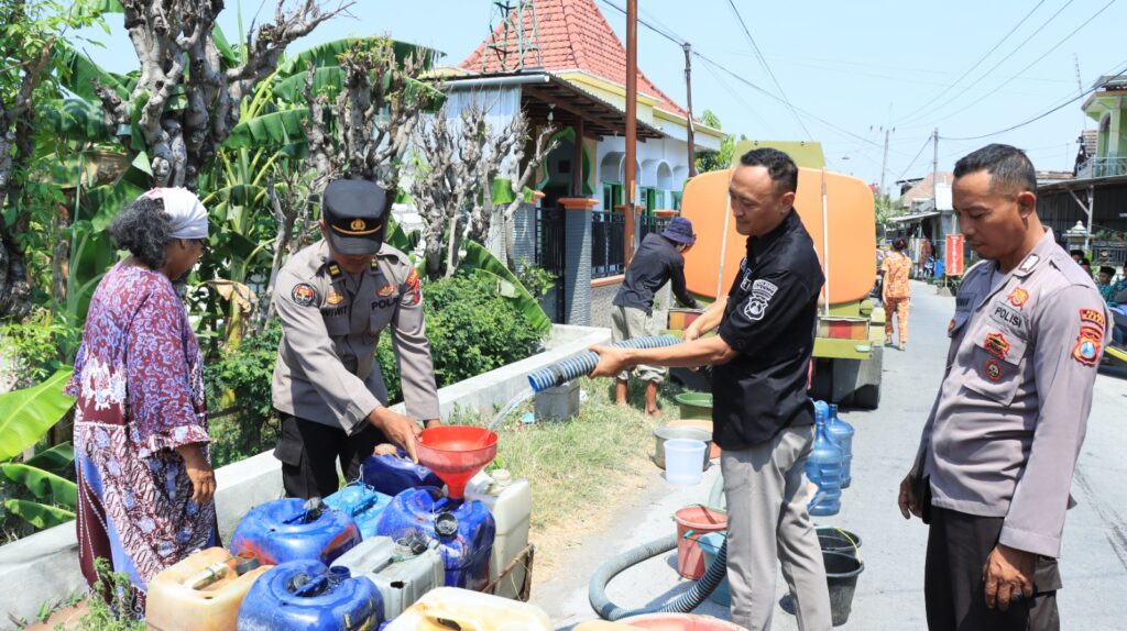 GRESIK – Dalam rangka menyambut Hari Ulang Tahun (HUT) Humas Polri ke-72, Polres Gresik melaksanakan kegiatan bakti sosial berupa pemberian air bersih kepada masyarakat yang terdampak dengan musim kemarau.