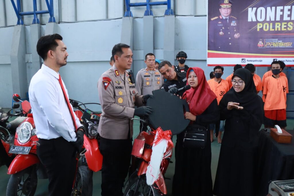 “Saya mengucapkan terima kasih kepada Polres Bojonegoro khususnya bapak Kapolres dan Bapak Kasat Reskrim beserta anggotanya yang sudah menemukan dan mengembalikan motor saya. Semoga Polres Bojonegoro semakin baik dalam melayani serta semakin dipecaya oleh masyarakat, Aamiin..,“ ucap Ngatini sambil sesekali menyeka air matanya. (*)