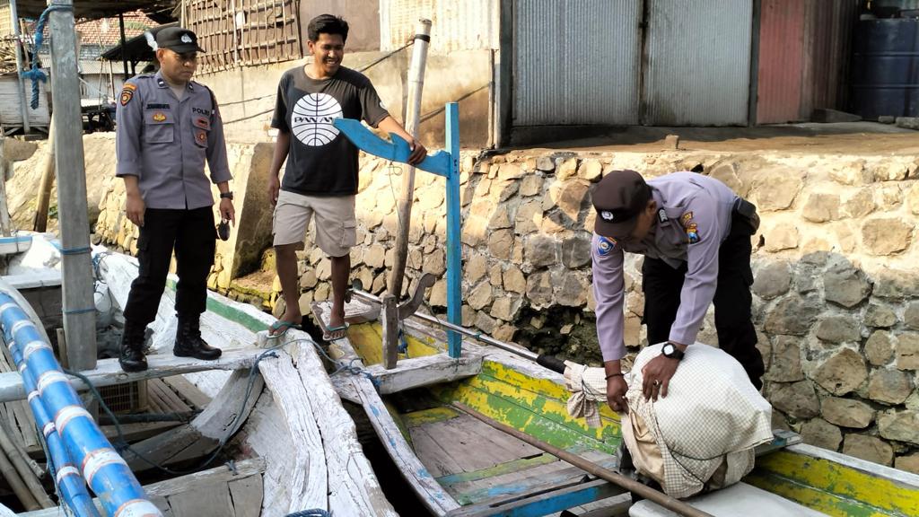 Seusai menyisir satu persatu perahu nelayan, Kapolsek kemudian mengumpulkan puluhan nelayan untuk menyampaikan pesan Kamtibmas.
