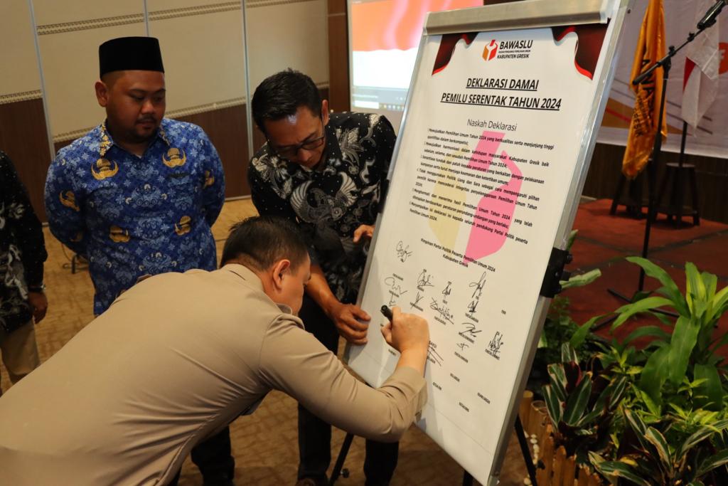 “Mengajak sama-sama menjaga berjalan dengan damai dan menjadi komitmen bersama. Bawaslu kabupaten Gresik menghimbau agar seluruh peserta pemilu mentaati peraturan,” ujar Habib.