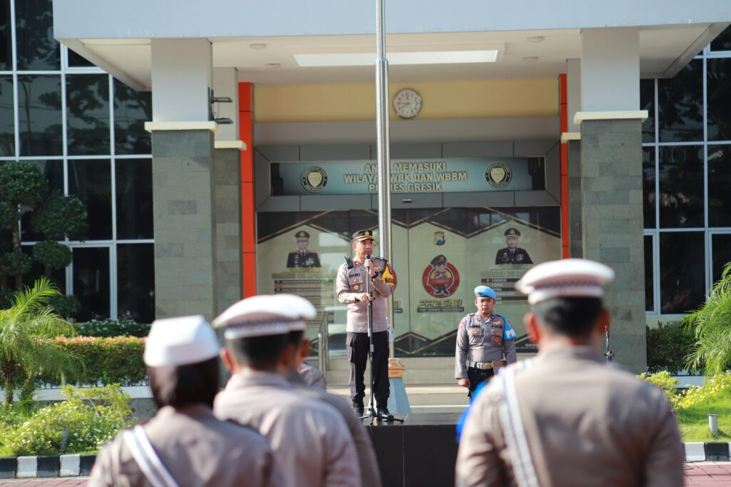“Menekankan pentingnya sinergitas dan kerjasama antar seluruh anggota Polri dalam menjaga kamtibmas di Kabupaten Gresik, agar seluruh anggota dapat bekerja dengan profesional dan penuh tanggung jawab untuk menciptakan situasi yang aman dan kondusif di wilayah Kabupaten Gresik,” Ucap Wakapolres Gresik Kompol Danu.