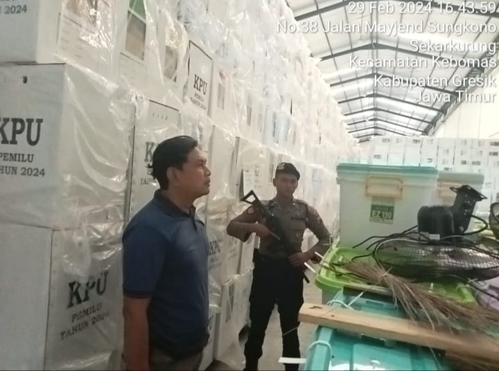 GRESIK – Kepolisian Resor (Polres) Gresik terus melakukan pengamanan ketat di Gudang Logistik Komisi Pemilihan Umum (KPU) Gresik pasca tahapan pemungutan suara Pemilihan Umum (Pemilu) tahun 2024.Kamis(7-03-2024)