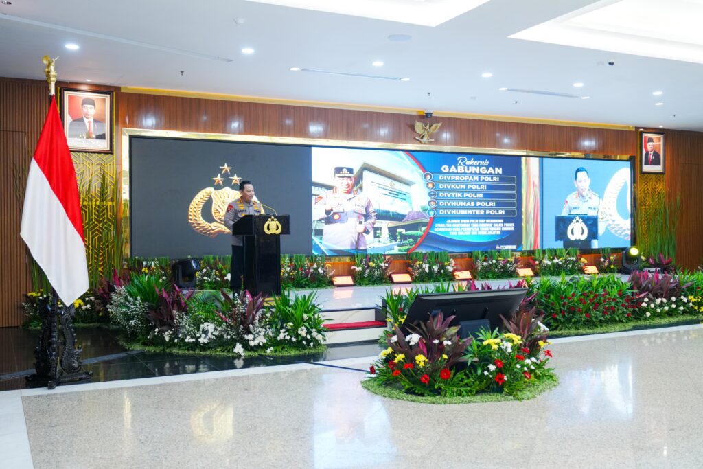 “Dapat kami laporkan kepada bapak kapolri bahwa peserta rakernis yang hadir saat ini berasal dari lima divisi, yaitu Divpropam, Divhubinter, Divtik, Divkum, dan Divhumas Polri dengan jumlah peserta seluruhnya 589 orang,” jelas Kadiv.