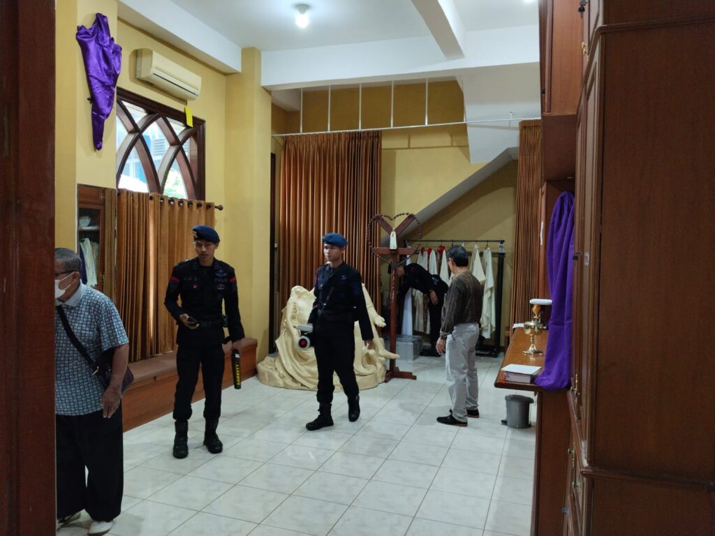 “Sterilisasi dilakukan di berbagai bagian gereja, termasuk altar, podium, toilet, ruang umat, ruang Romo, ruang panel kontrol, dan taman,”kata Kompol M.Soleh,Jumat (29/3)