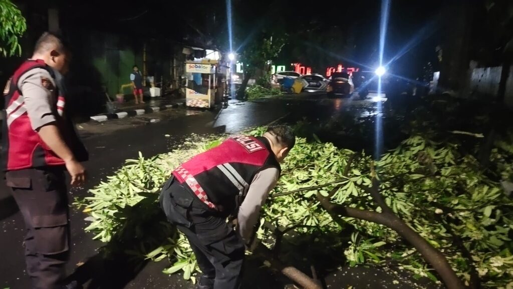 “Petugas di lapangan bersama warga sekitar mengevakuasi pohon yang melintang di sebagian jalan,” terang Kompol Abraham.