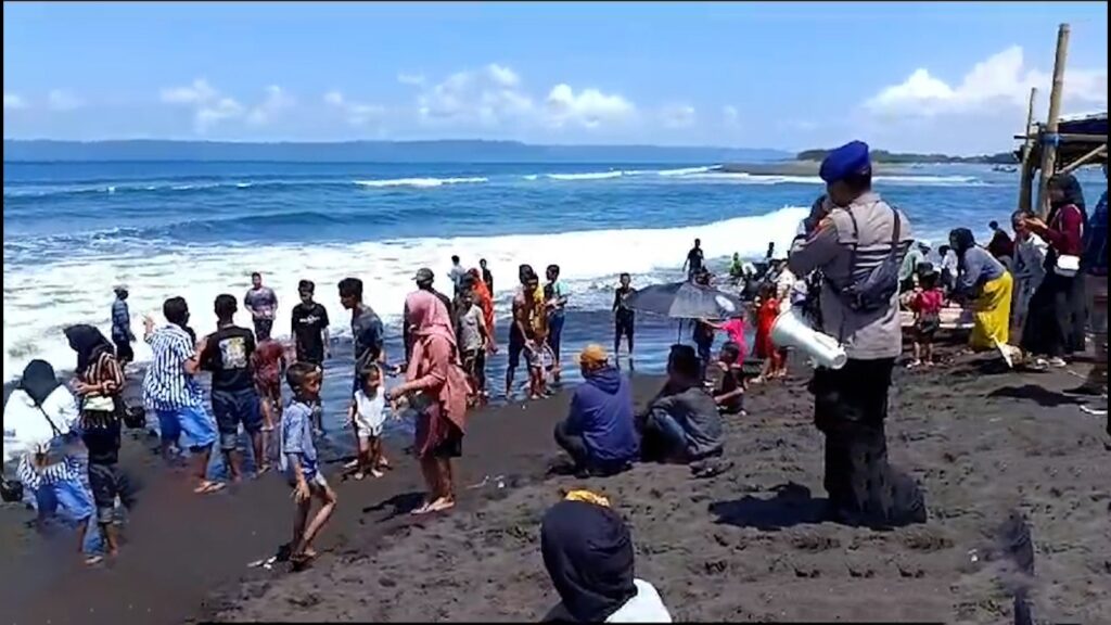 “Anggota kami dari Satpolairud disiagakan dan menyampaikan himbauan ini selain di sekitar pantai juga himbauan dengan menggunakan rubber boat,”ujar AKBP Bayu Pratama saat memantau di wisata Pantai Pancer,Minggu (14/4).