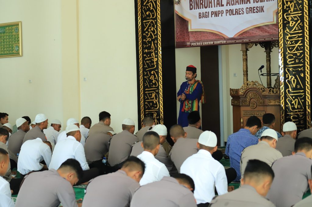 GRESIK – Polres Gresik menggelar kegiatan Binrohtal bagi personil Polres Gresik dan jajaran di Masjid Al-Aziz Polres Gresik. kamis (6-06-2024). Kegiatan Binrohtal ini bertujuan untuk meningkatkan keimanan dan ketakwaan personel Polres Gresik, serta membentuk karakter dan moral personel yang berakhlak mulia dan profesional dalam menjalankan tugas.