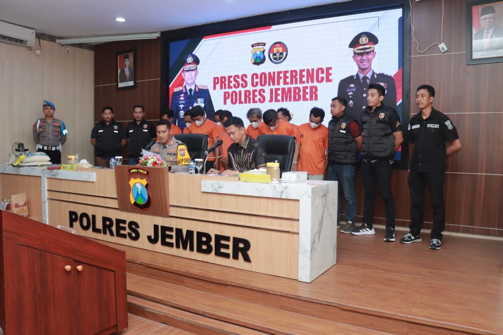 Kapolres Jember, AKBP Bayu Pratama Gubunagi, dalam konferensi pers mengumumkan bahwa selama 11 hari operasi, Polres Jember telah mengungkap total 106 kasus kejahatan.