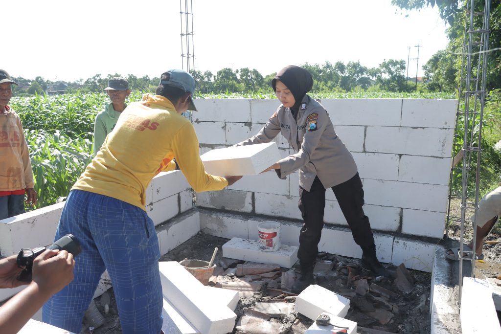 Sejumlah Polwan juga hadir untuk membantu para pekerja memasang bata. Selanjutnya, Polisi bersama para pekerja menggelar syukuran dengan makan bersama di lokasi proyek.