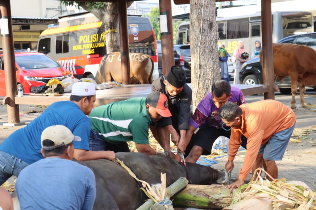 “Usahakan penyaluran daging kurban bisa tepat sasaran sehingga bisa meringankan masyarakat yang kurang mampu,”tutur Kombes Nanang.