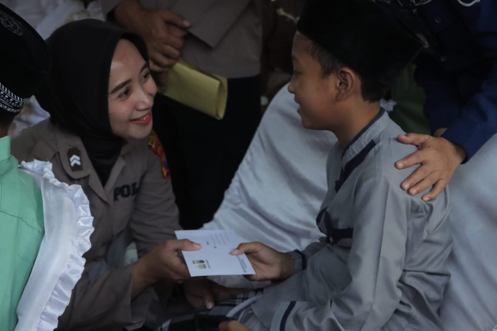 Senyumannya yang ramah, Polwan Polres Mojokerto ini mampu menenangkan anak – anak yang mengikuti khitan masal.
