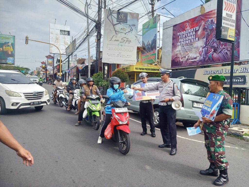 Sosialisasi tersebut berlangsung di berbagai titik strategis, salah satunya di Pertigaan Karangploso, dengan melibatkan Satuan Lalu Lintas (Satlantas) Polres Malang.