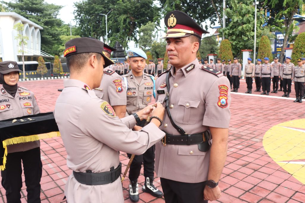 Kapolres Gresik AKBP Rovan Richard Mahenu mengucapkan terima kasih kepada pejabat lama atas dedikasi dan kontribusinya dalam menjaga keamanan dan ketertiban di wilayah hukum Polres Gresik.