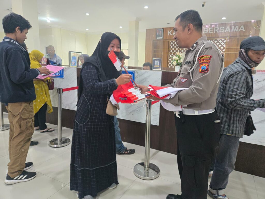 Dalam aksi simpatik tersebut, petugas membagikan bendera kecil dan pin Merah Putih kepada para pengendara, pejalan kaki, hingga anak-anak yang berada di sekitar lokasi. Langkah ini menjadi bagian dari edukasi kebangsaan serta penanaman nilai cinta Tanah Air sejak usia dini.