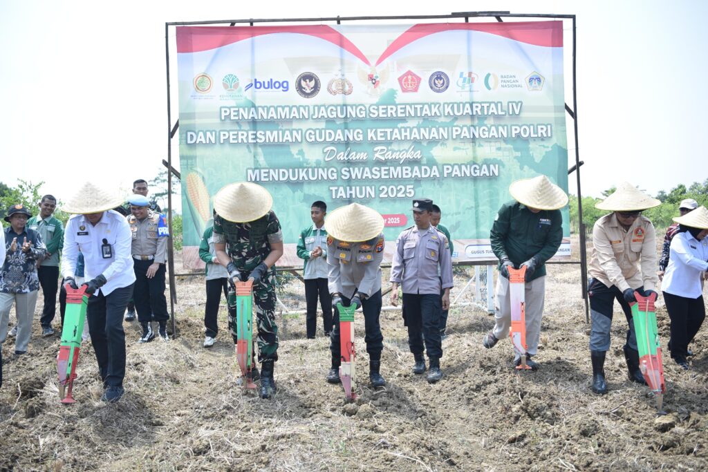 GRESIK – Kepolisian Resor (Polres) Gresik terus menunjukkan komitmennya dalam mendukung program Swasembada Pangan Tahun 2025. Rabu, 8 Oktober 2025, jajaran Polres Gresik melaksanakan Penanaman Jagung Serentak Kuartal IV sekaligus Peresmian Gudang Ketahanan Pangan Polri di Desa Surowiti, Kecamatan Panceng, Kabupaten Gresik, Jawa Timur.