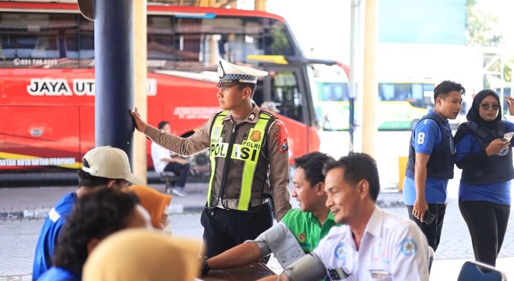 GRESIK – Dalam rangka mendukung kelancaran dan keselamatan arus transportasi menjelang Natal dan Tahun Baru (Nataru) melalui Operasi Lilin 2025, Polres Gresik menggelar operasi gabungan berupa rampcheck angkutan umum serta tes urine dan pemeriksaan kesehatan bagi pengemudi, Selasa (23/12/2025).