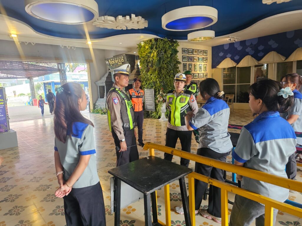 Petugas juga memberikan imbauan langsung kepada wisatawan agar selalu menjaga keselamatan diri dan barang bawaan.