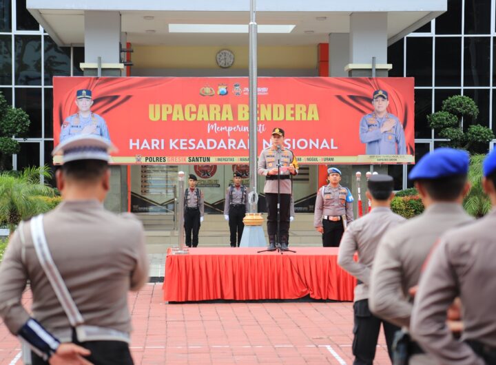 GRESIK – Kapolres Gresik AKBP Adhitya Panji Anom memimpin upacara bendera dalam rangka memperingati Hari Kesadaran Nasional...