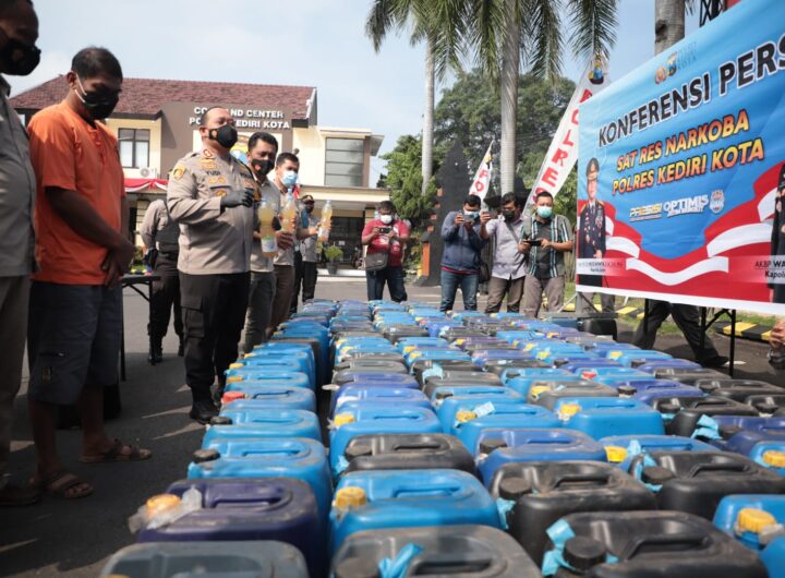 KOTA KEDIRI – Sat Res Narkoba Polres Kediri Kota menggagalkan peredaran ratusan liter minuman keras jenis Arak...