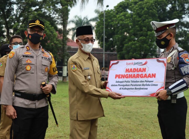 BONDOWOSO – Polantas Bondowoso, Dedi Muniwanto mendapatkan penghargaan dari Bupati Salwa Arifin dan Kapolres Bondowoso AKBP Wimboko....